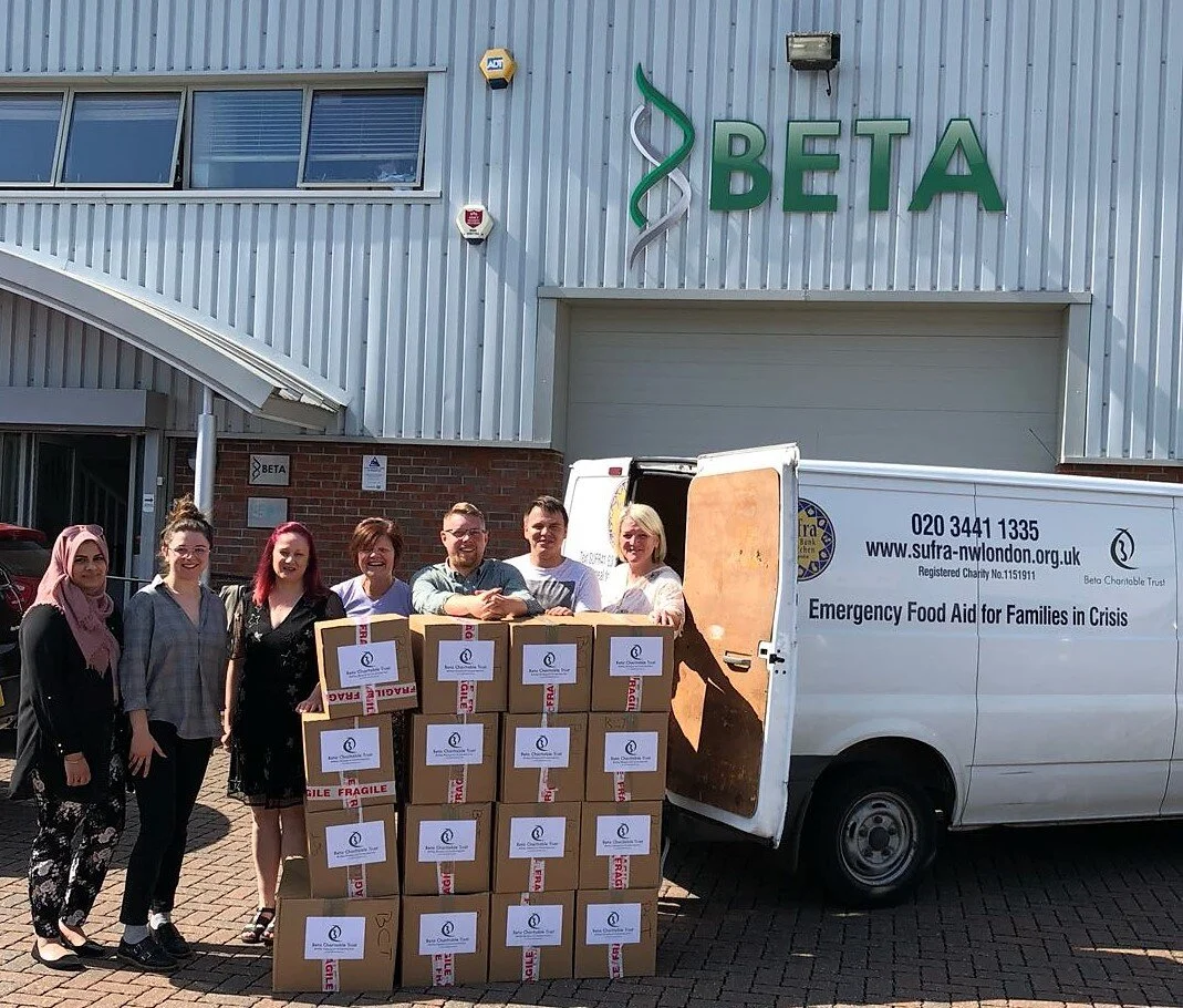 In May of this year the staff at Beta pulled together 16 boxes of food supplies, as well as 3 lovingly hand knitted blankets, which were donated and distributed by Sufra, in and around North West London.